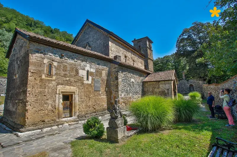კარიბჭეს რომ გადააბიჯებ, შენ წინაშე აღიმართება დარბაზული ტიპის ტაძარი, რომელსაც სამხრეთიდან, დასავლეთიდან და ჩრდილოეთიდან მინაშენები აქვს. შიგნით შესული თვალს ვერ მოსწყვეტ ტაძრის მოხატულობას, რომელიც XIV საუკუნეში, მეფე გიორგი ბრწყინვალის დროს არის შესრულებული.